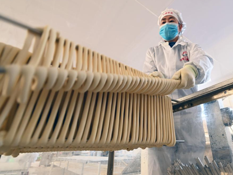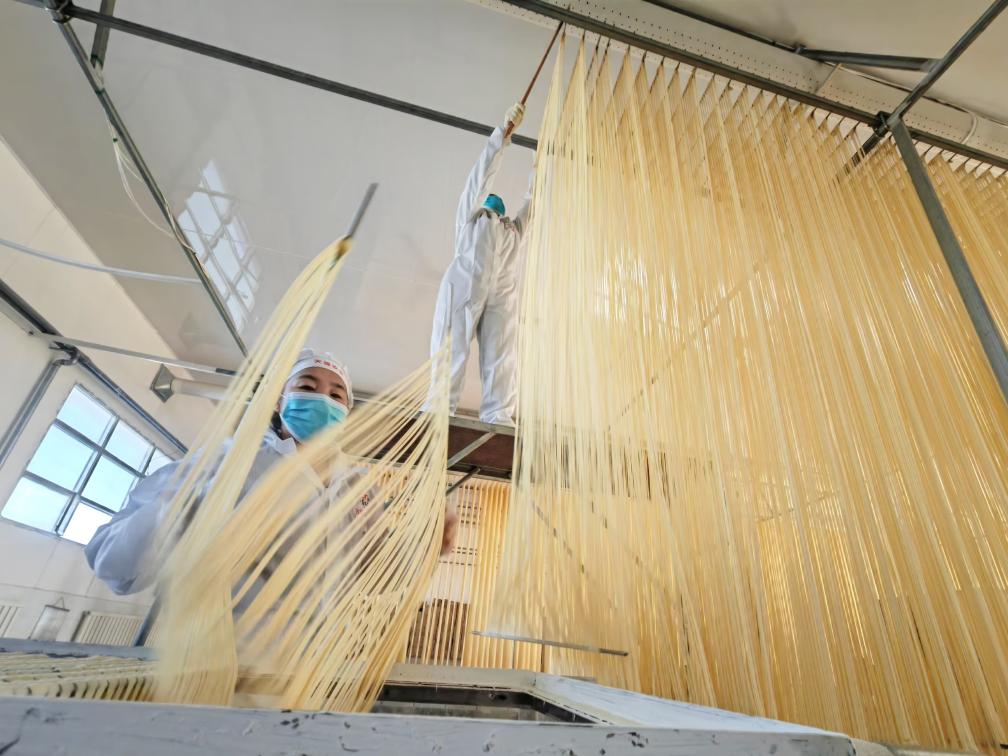 春節(jié)臨近,在甘肅省武威市古浪縣,“非遺”產(chǎn)品——古浪手工掛面訂單大增,當(dāng)?shù)匾恍┢髽I(yè)的掛面生產(chǎn)車間內(nèi),工人們抓緊制作手工掛面。古浪手工掛面歷史悠久,以國家農(nóng)產(chǎn)品地理標志產(chǎn)品古浪紅光頭小麥面粉為原料,經(jīng)十多道工序加工而成。2024年12月,古浪手工掛面制作技藝被列入甘肅省第五批省級非物質(zhì)文化遺產(chǎn)代表性項目名錄。