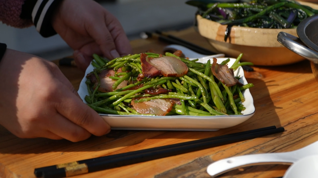 "大寒時節(jié),湖北陽新的萬畝湖蒿迎來豐收,正是品嘗當(dāng)?shù)靥厣珪r令美食湖蒿炒臘肉的佳期。"