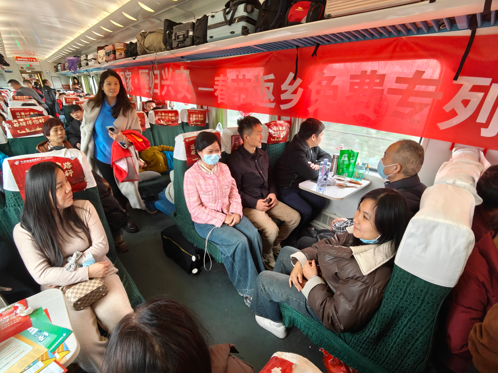 1月26日清晨,云霧飄過長江岸,風(fēng)景從列車車窗向后退去。K486次務(wù)工人員返鄉(xiāng)專列進入四川盆地,駛過重慶涪陵,家鄉(xiāng)已在望,從深圳免費返回四川廣安的700余名務(wù)工者喜笑顏開。