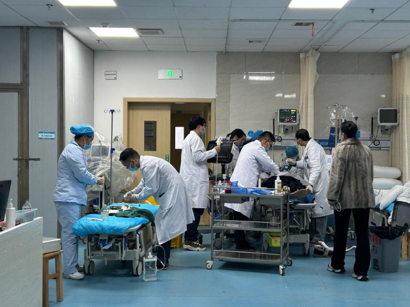 加大劑量、上呼吸機、準備輸血……聽著心電監(jiān)護儀的嘀嘀聲和醫(yī)生護士口中的專業(yè)術(shù)語,記者悄悄退到搶救室外,遠遠記錄下這忙碌的一幕。