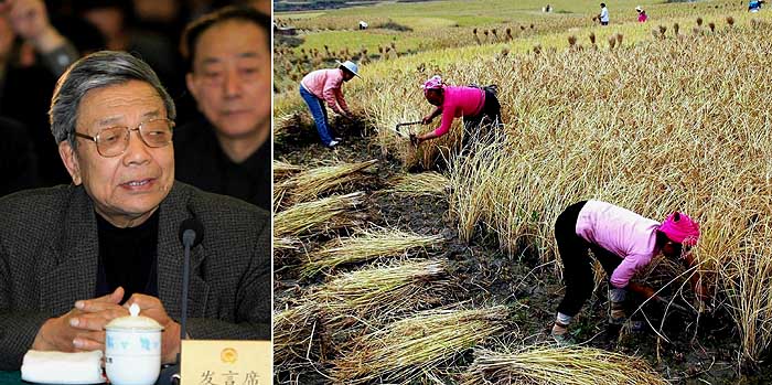 全國政協(xié)委員、中國農(nóng)業(yè)大學教授楊志福(左圖)認為,必須依靠現(xiàn)代農(nóng)業(yè)科學技術,增加對糧食生產(chǎn)的投入,包括政策投入、資金投入、物資投入、科技投入,使糧食生產(chǎn)穩(wěn)步上升,確保我國糧食安全。新華社記者 李濤 攝 右圖為貴陽市花溪區(qū)高坡鄉(xiāng)的農(nóng)民在收割稻谷(資料照片)。新華社發(fā)