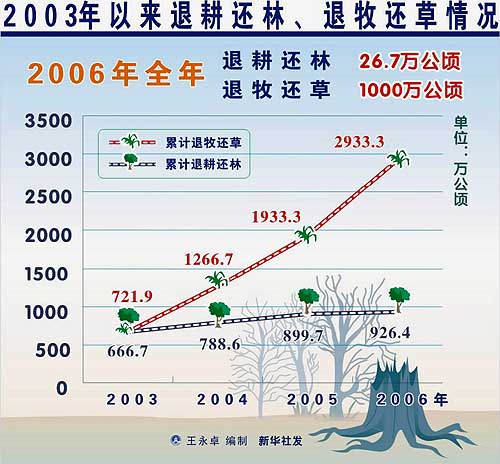 自1999年啟動(dòng)以來(lái),退耕還林工程取得了顯著的生態(tài)效益和社會(huì)經(jīng)濟(jì)效益,已成為最大的惠農(nóng)舉措之一。按原定的8年補(bǔ)貼期,2007年起每年將有大面積的還林地達(dá)到補(bǔ)貼期限。 然而,因種植的生態(tài)林、經(jīng)濟(jì)林大部分未進(jìn)入收益期,來(lái)自?xún)?nèi)蒙古、寧夏、陜西等地的全國(guó)人大代表呼吁盡快出臺(tái)接續(xù)補(bǔ)貼政策,鞏固退耕還林成果。