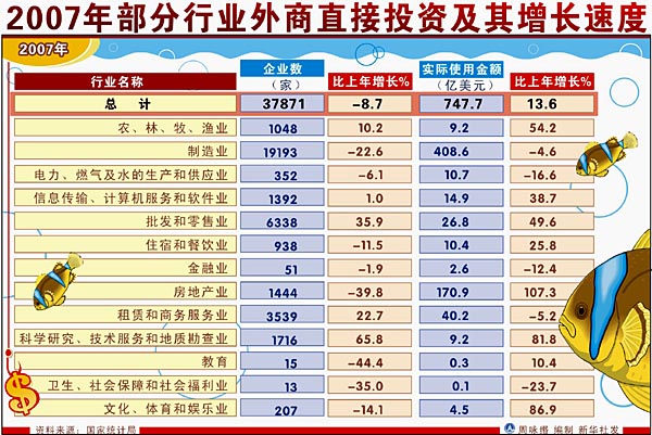世界銀行在分析中國引資政策和環(huán)境后發(fā)表的《中國利用外資的前景和戰(zhàn)略研究》報告中指出,2006年至2010年期間,中國將占到預計流入發(fā)展中國家的2500億美元外商直接投資(FDI)的30%左右。照此流量,張銳按產業(yè)轉移理論分析,跨國公司產業(yè)轉移一般遵循先制造業(yè)后服務業(yè),然后是研發(fā)中心的遞進過程。目前,外企進入中國已經完成了第一階段進入了第二階段。 中國自加入WTO以后,市場變得更加開放,外資也開始向國內不同產業(yè)擴展。來自中美商會的統(tǒng)計表明,目前,服務業(yè)、物流、銀行和旅游已成為美商投資的新增長點。 在金融服務方面,更多外資銀行在中國增設了分公司,外資參股中國銀行業(yè)的規(guī)模迅速擴大,農村市場向外資敞開了大門。在物流方面,越來越多的外國物流企業(yè)來華投資,中國也相應的為外資物流企業(yè)出臺了指南及一套物流企業(yè)國家標準。特別是伴隨著制造業(yè)與物流業(yè)的融合,物流供應鏈越來越成為一個炙手可熱的產業(yè),稀缺的物流網絡資源將吊起外企的新胃口。在航空方面,中美商會出臺的2007年白皮書中說,預計未來20年里,中國民航業(yè)將繼續(xù)以每年高于9%的速度增長。照此,中國將很快成為繼美國之后世界第二大民用航空市場,從而為美國供應商提供極大的商業(yè)機會。 有資料表明,從現(xiàn)在至2010年,包括工程承包、設計咨詢、技術轉讓和物流運輸在內的中國服務貿易業(yè)將保持年均20%以上的增長態(tài)勢。這給全球的各種外資提供了機會。