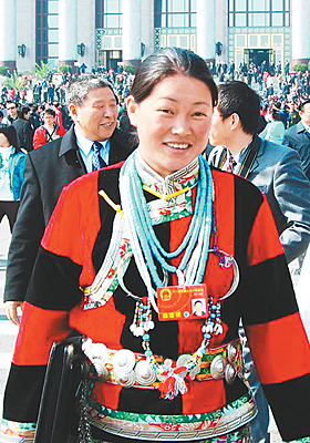 自從2003年當選十屆全國人大代表以來,這樣的場面她見多了,已經(jīng)看不到當年一說話就紅臉低頭的羞澀。 “我是沾了珞巴族的光!睍约t說,“每次到北京開會,我都會提醒自己,我代表的是一個民族,我是珞巴族的唯一代表。一想到這兒,就會產(chǎn)生一種神圣感!” 珞巴族,中國人口最少的一個民族,只有3000人左右,主要分布在西藏東起察隅、西至門隅之間的珞瑜地區(qū),有自己的語言,沒有本民族文字,長期保留著刻木結(jié)繩記數(shù)記事的原始方法。“珞巴”是藏族對他們的稱呼,意為“南方人”。 曉紅說:“過去,珞巴族屬于被壓迫的民族,長期偏居深山,新中國成立后才翻身做主,正式定名為珞巴族。從那時起,珞巴族人和西藏其他少數(shù)民族一樣,也獲得了與藏族人同等的政治、經(jīng)濟和人身自由的權(quán)利,歷屆全國人大和全國政協(xié)都為我們各保留一名代表和委員的名額! 珞巴族人只有名,沒有姓,曉紅的全名就叫曉紅。曉紅的父母都是當?shù)冂蟀妥遛r(nóng)民。1996年,她從西藏農(nóng)牧學院畢業(yè)后,被分配到林芝地區(qū)米林縣米林鎮(zhèn)政府工作,4年后被任命為副鎮(zhèn)長,2005年7月起擔任米林縣南伊珞巴民族鄉(xiāng)鄉(xiāng)長。她務(wù)實、能干,在當?shù)乜诒芎谩?BR> “這幾年,我利用參加全國兩會的機會,直接向國家領(lǐng)導人反映珞巴族人的意愿,這是以前想都不敢想的事!睍约t話語里充滿了自豪。在她家,還有一位“名人”:公公達登連續(xù)當選九屆、十屆全國政協(xié)委員。 “我能再次當選全國人大代表,既是珞巴族人的榮耀,也說明黨和國家對少數(shù)民族的關(guān)心和重視。”曉紅告訴記者,五年前她提出的有關(guān)西藏米林縣南伊珞巴民族鄉(xiāng)的公路、電、房、通信等基礎(chǔ)設(shè)施建設(shè)問題,目前已全部解決。