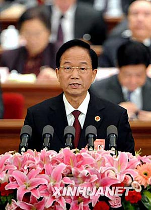 3月10日,十一屆全國(guó)人大一次會(huì)議在北京人民大會(huì)堂舉行第三次全體會(huì)議。最高人民檢察院檢察長(zhǎng)賈春旺作最高人民檢察院工作報(bào)告。 新華社記者 李學(xué)仁