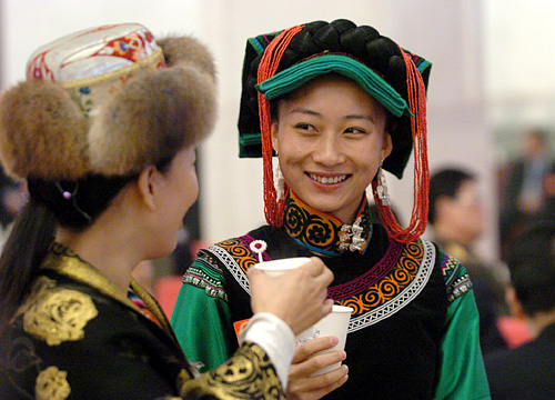 2008年3月10日上午9時(shí),第十一屆全國(guó)人民代表大會(huì)第一次會(huì)議在人民大會(huì)堂舉行第三次全體會(huì)議,聽取最高人民法院院長(zhǎng)肖揚(yáng)作最高人民法院工作報(bào)告;聽取最高人民檢察院檢察長(zhǎng)賈春旺作最高人民檢察院工作報(bào)告。圖為大會(huì)開始前兩位代表在交談。 |