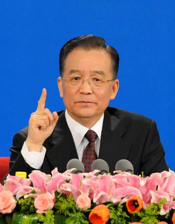 國務(wù)院總理溫家寶回答記者提問。 新華社記者 蘭紅光 攝