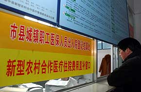 一名病人家屬正在蘭州市榆中縣第一人民醫(yī)院咨詢相關情況(2007年1月24日攝)。