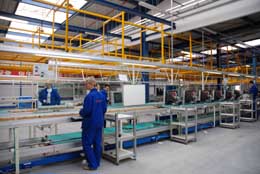 12月6日,四川長虹集團(tuán)公司在捷克寧布爾克投資建設(shè)的工廠正式落成并投入試生產(chǎn)。長虹在捷克首期興建的這家電視機(jī)廠建筑面積為3.3萬平方米,共有5條生產(chǎn)線,年產(chǎn)50英寸以下各種平板電視和CRT電視100萬臺。這也是四川長虹集團(tuán)公司在歐洲的第一家工廠。 新華社記者 丁宜 攝