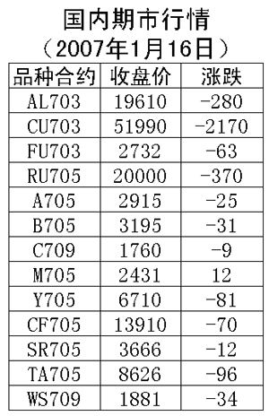 16日國(guó)內(nèi)期貨市場(chǎng)除豆粕外其余品種均下跌。
