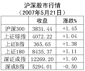 滬深股市主要股指在央行上周五加息后的第一個(gè)交易日以下跌3%的幅度低開(kāi),但在入場(chǎng)資金逢低買(mǎi)入的拉抬下,大盤(pán)隨即震蕩走高,指數(shù)由綠翻紅,雙雙創(chuàng)下歷史新高。截至收盤(pán)時(shí),上證綜指和深證成指漲幅分別超過(guò)1%。
