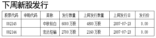周一(7月16日)證監(jiān)會(huì)發(fā)審委將召開(kāi)第80次和81次工作會(huì)議,審核南京石油化工、常鋁鋁業(yè)、煙臺(tái)氨綸和浙江報(bào)喜鳥(niǎo)服飾四家公司的首發(fā)申請(qǐng)。 南京石油化工股份有限公司(原南京石油化工廠)成立于1992年,以生產(chǎn)石油化工產(chǎn)品為主導(dǎo),擁有自營(yíng)進(jìn)出口權(quán)。該公司擬發(fā)行2700萬(wàn)股,發(fā)行后總股本為1.07億股。 江蘇常鋁鋁業(yè)股份有限公司是由常熟市鋁箔廠發(fā)起設(shè)立并控股的股份有限公司,是國(guó)內(nèi)專業(yè)生產(chǎn)鋁箔、親水涂層鋁箔和鋁板帶材的鋁加工企業(yè)。該公司擬發(fā)行4250萬(wàn)股,發(fā)行后總股本1.7億股。 煙臺(tái)氨綸股份有限公司為目前國(guó)內(nèi)規(guī)模最大的特種纖維生產(chǎn)企業(yè),各項(xiàng)經(jīng)濟(jì)技術(shù)指標(biāo)居全國(guó)同行業(yè)前列。該公司擬發(fā)行3200萬(wàn)股,發(fā)行后總股本不超過(guò)1.25億股。 浙江報(bào)喜鳥(niǎo)服飾股份有限公司成立于2001年,注冊(cè)資本7200萬(wàn)元,主要從事報(bào)喜鳥(niǎo)品牌西服和襯衫等男士系列服飾產(chǎn)品的設(shè)計(jì)、生產(chǎn)和銷售。該公司計(jì)劃發(fā)行2400萬(wàn)股,發(fā)行后總股本為9600萬(wàn)股。 7月13日,證監(jiān)會(huì)發(fā)審委召開(kāi)第77次、第78次會(huì)議,分別通過(guò)了上海漢鐘精機(jī)股份有限公司和深圳市惠程電氣股份有限公司首發(fā)申請(qǐng)。預(yù)披露顯示,上海漢鐘擬發(fā)行不超過(guò)3800萬(wàn)股,占發(fā)行后總股本不超過(guò)25.25%,不低于25%,發(fā)行前每股凈資產(chǎn)1.54元,募資擬投向新建壓縮機(jī)零部件自動(dòng)化生產(chǎn)線項(xiàng)目、新建螺桿式流體機(jī)械綜合生產(chǎn)線項(xiàng)目、企業(yè)信息管理和物流倉(cāng)儲(chǔ)系統(tǒng)項(xiàng)目和工程技術(shù)開(kāi)發(fā)中心項(xiàng)目。 惠程電氣擬發(fā)行1300萬(wàn)股,占發(fā)行后總股本的25.96%,發(fā)行前每股凈資產(chǎn)5.4元,募資擬投向其電氣絕緣特種纖維復(fù)合材料SMC及制品項(xiàng)目,高性能硅橡膠電氣絕緣制品項(xiàng)目和新型電氣絕緣材料及產(chǎn)品研究開(kāi)發(fā)中心。 發(fā)審委還通過(guò)了萬(wàn)科企業(yè)股份有限公司和上海置信電氣股份有限公司的增發(fā)申請(qǐng)。萬(wàn)科在2006年年報(bào)中表示將公開(kāi)增發(fā)A股,數(shù)量不超過(guò)發(fā)行前公司總股本的20%,目前公司總股本為65.55億股,最多發(fā)行數(shù)量為13.11億股。置信電氣將公開(kāi)增發(fā)不超過(guò)2200萬(wàn)股,為建設(shè)3萬(wàn)臺(tái)產(chǎn)能新廠募集資金。