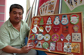 | 趙玉學(xué)在展示他收藏的異形撲克牌。本報(bào)記者 燕雁 攝 | 本報(bào)訊