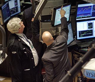 | 11日,交易員在美國(guó)紐約證券交易所忙碌。美聯(lián)儲(chǔ)聯(lián)手西方四大央行向市場(chǎng)注資令美股大漲。新華社/美聯(lián) | 受美聯(lián)儲(chǔ)將和歐洲中央銀行等西方主要央行采取聯(lián)合行動(dòng),向金融系統(tǒng)大規(guī)模注資消息的影響,11日歐美股市強(qiáng)勁反彈。 美國(guó)聯(lián)邦儲(chǔ)備委員會(huì)11日宣布再次通過(guò)貸款拍賣方式為商業(yè)銀行提供500億美元資金,以增加市場(chǎng)流動(dòng)性,這是美聯(lián)儲(chǔ)自去年12月份以來(lái)第七次進(jìn)行貸款拍賣。 美聯(lián)儲(chǔ)當(dāng)天還宣布,將與歐洲中央銀行等西方主要央行采取聯(lián)合行動(dòng),向金融系統(tǒng)大規(guī)模注資以增強(qiáng)市場(chǎng)流動(dòng)性。其中,美聯(lián)儲(chǔ)表示計(jì)劃通過(guò)短期貸款拍賣方式向其一級(jí)交易商出借最多2000億美元國(guó)債,這筆國(guó)債將通過(guò)拍賣程序提供,拍賣將從27日起每周舉行一次。美聯(lián)儲(chǔ)同時(shí)宣布創(chuàng)立新的“定期證券拆借機(jī)制”,把拆借期限由隔夜增加到28天,允許金融機(jī)構(gòu)以住宅抵押貸款支持證券作為借款抵押。 受利好消息刺激,華爾街股市當(dāng)天強(qiáng)勁反彈,與抵押貸款業(yè)務(wù)有關(guān)的金融機(jī)構(gòu)股票價(jià)格一路領(lǐng)漲。道瓊斯工業(yè)指數(shù)11日上漲416.66點(diǎn),報(bào)收于12156.81點(diǎn),升幅達(dá)3.55%,創(chuàng)2002年7月29日以來(lái)最大單日上漲點(diǎn)數(shù);標(biāo)準(zhǔn)普爾500種股票指數(shù)攀升47.28點(diǎn),報(bào)收于1320.65點(diǎn),上漲3.71%,創(chuàng)2002年10月以來(lái)最大單日漲幅;納斯達(dá)克綜合指數(shù)上漲86.42點(diǎn),報(bào)收于2255.76點(diǎn),漲幅達(dá)3.98%。 美聯(lián)儲(chǔ)聯(lián)手西方主要央行向金融系統(tǒng)注資的消息還刺激歐洲主要股市出現(xiàn)反彈。11日英國(guó)倫敦股市《金融時(shí)報(bào)》100種股票平均價(jià)格指數(shù)以5690.4點(diǎn)收盤,上漲61.3點(diǎn),漲幅達(dá)1.09%。法國(guó)巴黎股市CAC40指數(shù)以4627.69點(diǎn)收盤,比前一交易日上漲了60.7點(diǎn),漲幅為1.33%。德國(guó)法蘭克福股市DAX指數(shù)以6524.57點(diǎn)收盤,比前一交易日上漲了76.49點(diǎn),漲幅為1.19%。 但因?yàn)橥顿Y者對(duì)美國(guó)經(jīng)濟(jì)走勢(shì)仍信心不足,美元對(duì)歐元、日元匯率11日反彈后回落;美國(guó)輕質(zhì)原油期貨價(jià)格停留在每桶108.73美元的高位,黃金期貨價(jià)格有小幅上漲。 在美股帶動(dòng)下,亞洲股市也表現(xiàn)回暖。12日,日本日經(jīng)指數(shù)上漲202.85點(diǎn),報(bào)收于12861.13點(diǎn),漲幅為1.6%;中國(guó)香港恒生指數(shù)上漲427.41點(diǎn),報(bào)收于23423點(diǎn),漲幅1.86%。 有分析人士認(rèn)為,雖然西方央行的干預(yù)措施在短期內(nèi)有助于恢復(fù)投資者信心,但從中長(zhǎng)期看,要扭轉(zhuǎn)過(guò)去幾個(gè)月股市持續(xù)動(dòng)蕩的局面,還有待信貸緊縮逐步緩解,而這需要一定的時(shí)間。 國(guó)際貨幣基金組織第一副總裁約翰·利普斯基也認(rèn)為,美聯(lián)儲(chǔ)的注資措施有助于解決金融市場(chǎng)面臨的問(wèn)題,但不能解決美國(guó)經(jīng)濟(jì)面臨的問(wèn)題。 分析人士普遍預(yù)計(jì),西方央行在本次聯(lián)手應(yīng)對(duì)信貸緊縮后,還會(huì)采取其他干預(yù)措施。其中,在定于下周舉行的貨幣政策決策例會(huì)上,美聯(lián)儲(chǔ)很可能決定再次降息。