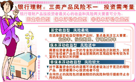 銀行理財(cái):三類(lèi)產(chǎn)品風(fēng)險(xiǎn)不一 投資需考量