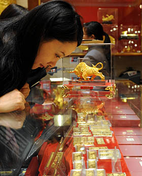 | 經(jīng)歷了2008年席卷全球的金融風(fēng)暴,黃金的價(jià)格在鼠年歲末逐漸回升,成為市場(chǎng)的當(dāng)紅藏品。新華社記者 李文