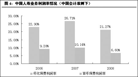 中信建投證券研究發(fā)展部金融服務(wù)業(yè)分析師魏濤分析說,2008年中國人壽取得了高達(dá)50.34%的壽險(xiǎn)保費(fèi)增長率,但標(biāo)準(zhǔn)保費(fèi)利潤率由26.7%下降為21%,而首年保費(fèi)利潤率則由10%下降為6.6%。從香港準(zhǔn)則下保費(fèi)數(shù)據(jù)來看,期繳占比很低的總投資型合同收入增長率為101%,遠(yuǎn)高于總保費(fèi)收入增速23.1%。 他認(rèn)為,這是公司在競爭情勢下,對規(guī)模和效益作出抉擇后的戰(zhàn)略選擇。 中國人壽保險(xiǎn)股份有限公司總裁萬峰在3月26日的業(yè)績發(fā)布會上強(qiáng)調(diào),中國人壽今年要進(jìn)一步調(diào)整業(yè)務(wù)結(jié)構(gòu),加大長期期交型、保障型產(chǎn)品發(fā)展力度,實(shí)行“轉(zhuǎn)型增效”。從今年一季度情況看,轉(zhuǎn)型效果非常明顯,5年以上、10年以上期交業(yè)務(wù)增長強(qiáng)勁。