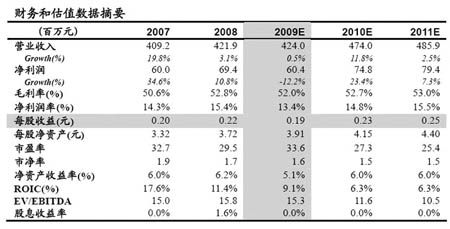 安信證券傳媒、旅游行業(yè)研究員蘇慧表示,我們堅(jiān)持2008年報(bào)點(diǎn)評(píng)中對(duì)公司的評(píng)價(jià),維持2009年~2011年EPS分別為0.19元、0.23元及0.25元的盈利預(yù)測(cè),鑒于市場(chǎng)估值水平較前次報(bào)告有大幅抬升,故上調(diào)公司目標(biāo)價(jià)至6.46元,維持“中性_A”的投資評(píng)級(jí)。 |