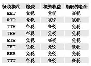 EET是指在企業(yè)年金支付時征稅,而對年金的繳費和年金投資所形成的收益免稅。在主要的西方發(fā)達國家里,選擇EET模式的有英國、比利時、德國、美國、加拿大等國,選擇ETT模式的有丹麥、意大利、瑞典和澳大利亞,選擇TEE或者TTE模式的是盧森堡、新西蘭。