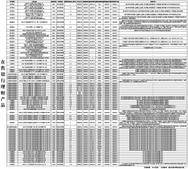 在售銀行理財產(chǎn)品[圖表]