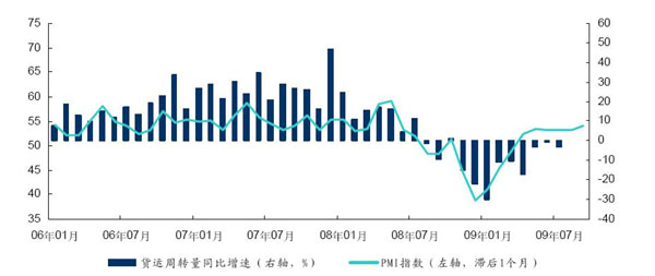 2006年1月-2009年8月中國PMI指數(shù)與航空貨