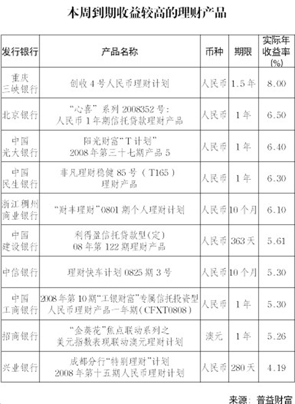 本周到期收益較高的理財(cái)產(chǎn)品[表]