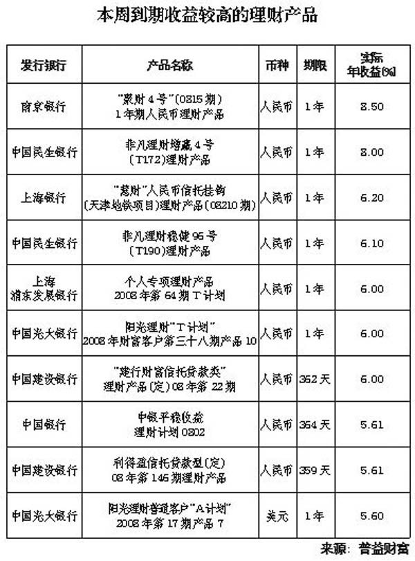 本周到期收回益較高的理財產(chǎn)品[圖表]
