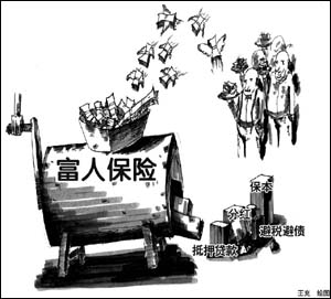 業(yè)內(nèi)人士表示,“轉(zhuǎn)移資產(chǎn)、合理規(guī)避稅收、避免債務危機”等一些令富人心動的產(chǎn)品賣點,都成為“富人險”熱銷的原因。 “富人險”熱銷的背后,不僅是因為居民收入提高后商業(yè)保險需求的增加,保險公司大打規(guī)避遺產(chǎn)稅這張牌起到了推波助瀾的作用。 “這將為市民提供一個合理的規(guī)避遺產(chǎn)稅的途徑。”中國人壽有關(guān)人士告訴記者。雖然我國目前尚未開征遺產(chǎn)稅,但有關(guān)征收的消息已傳出多時,而國外遺產(chǎn)稅一般高達40%左右,因此一些“富人”不得不未雨綢繆。 “對于‘富人’來說,他們更關(guān)心資金安全和資金自由取用!敝袊桨驳娜耸拷榻B說,該公司“富人險”有兩點好處打動客戶:除了保證本金安全外,還有“變現(xiàn)”即保單質(zhì)押貸款功能。為了吸引“富人”,該保險合同可以用做抵押向銀行貸款。 該人士還表示,“若企業(yè)遭遇破產(chǎn)查封,保險是不能被查封的財產(chǎn);欠債被追討時,保險資金不能被抵債;若想將資金傳延后代,這是合理的避債、避稅渠道! 該保險工作人員的說法有法律依據(jù)嗎?據(jù)記者查證,雖然《中華人民共和國合同法》73條第一款明確了人壽保險不屬于債務的追償范圍,但目前的法律法規(guī)中,除社;鹜,在2004年最高人民法院發(fā)布的《關(guān)于人民法院民事執(zhí)行中查封、扣押、凍結(jié)財產(chǎn)的規(guī)定》指出不能凍結(jié)查封的8項財產(chǎn)中,未專門列出保險資產(chǎn)。這意味著“避債之說”并不可靠。壽險產(chǎn)品確實可以避債,但遇到凍結(jié)查封時,卻不能幸免。 對于保險公司大打遺產(chǎn)稅牌吸引客戶,北京工商大學保險研究中心主任王緒謹教授在接受《經(jīng)濟參考報》記者采訪時表示,如果遺產(chǎn)稅不日真的啟動,類似于“富人險”等能夠規(guī)避稅費的險種將有更好的前景,“避險避稅是投資產(chǎn)品本身就可以具備的功能。”