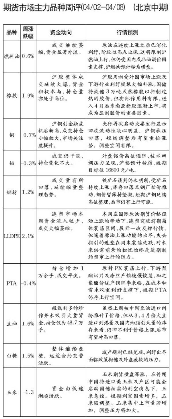 期貨市場主力品種周評(píng)[04.02-04.08]