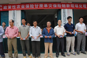 進(jìn)入2010年4月,中國(guó)人民財(cái)產(chǎn)保險(xiǎn)股份有限公司田東支公司的工作人員非常繁忙,幾乎每天都會(huì)接到蔗農(nóng)甘蔗因旱受災(zāi)的報(bào)案電話,每天都要到甘蔗地里現(xiàn)場(chǎng)查看并辦理賠付。 甘蔗減產(chǎn)波及整個(gè)田東縣,蔗農(nóng)損失慘重。田東縣農(nóng)業(yè)局糖辦主任蘇建新介紹,這個(gè)榨季全縣36萬畝甘蔗入榨總量136萬噸,比上一榨季減少了約34萬噸;干旱造成甘蔗單產(chǎn)不到3.8噸,至少減產(chǎn)了20%。 廣西百色市田東縣平馬鎮(zhèn)懷民村村民黃山領(lǐng)2009/2010年榨季種了10畝甘蔗,去年8月以來的持續(xù)干旱造成大幅減產(chǎn),只收了約40噸甘蔗,比上一榨季減產(chǎn)近50%,按照目前的甘蔗收購(gòu)價(jià),他這個(gè)榨季至少損失收入1.3萬元。 在大災(zāi)之年,一些蔗農(nóng)因?yàn)橐环荼kU(xiǎn)協(xié)議大大減輕了損失。去年5月開始,田東縣按照“政府主導(dǎo)、財(cái)政支持、公司經(jīng)營(yíng)、農(nóng)民自愿”的原則,從去年5月開始推出了甘蔗、香蕉種植的政策性農(nóng)業(yè)生產(chǎn)保險(xiǎn)。 如今,這份保險(xiǎn)已經(jīng)成為農(nóng)戶甘蔗因旱受損后減少損失的一座堅(jiān)實(shí)“靠山”。田東縣副縣長(zhǎng)吳風(fēng)雷說,“在保險(xiǎn)期限內(nèi)全縣蔗農(nóng)將從保險(xiǎn)公司得到賠付數(shù)百萬元,這大大減輕了農(nóng)民的損失,對(duì)農(nóng)業(yè)風(fēng)險(xiǎn)的保障作用十分明顯! “請(qǐng)獲得賠款的韋定美、廖劍鋒等12位農(nóng)戶代表上臺(tái)領(lǐng)款!苯衲4月30日,田東縣甘蔗旱災(zāi)保險(xiǎn)賠款現(xiàn)場(chǎng)兌現(xiàn)大會(huì)上,數(shù)百名農(nóng)民朋友興高采烈地把現(xiàn)場(chǎng)圍了個(gè)水泄不通。中國(guó)人保財(cái)險(xiǎn)田東支公司經(jīng)過勘察災(zāi)情,確認(rèn)有9600多畝甘蔗受損,根據(jù)嚴(yán)重、中度、輕度三個(gè)損失程度,最后確定全縣甘蔗賠償為120萬元,最高單筆賠償為1.3萬元。林逢鎮(zhèn)和同村568戶4387畝獲得賠償6萬多元。 林逢鎮(zhèn)和同村村主任廖藝榮告訴記者,他家種植了9畝甘蔗,受旱災(zāi)影響嚴(yán)重,經(jīng)保險(xiǎn)公司現(xiàn)場(chǎng)核查因?yàn)?zāi)受損面積為3畝,總共得到900多元的賠付款。 在和同村,村民主要靠種植甘蔗為生,700多戶目前有612戶參保,參保率達(dá)到90%以上。此次旱災(zāi)中,保險(xiǎn)公司現(xiàn)場(chǎng)核查后核定賠付145畝甘蔗損失,參保農(nóng)戶獲得最多的賠付款有3000多元。 “我們這里甘蔗每年都有火災(zāi)、旱災(zāi)發(fā)生的危險(xiǎn),農(nóng)戶每畝地只需要出2.5元,相當(dāng)于少吃一頓肉的錢,旱災(zāi)發(fā)生后就可以獲得大實(shí)惠!焙屯迮獡芡娃r(nóng)民黃紹崔說,“我們屯里戶戶都參保,參保率100%,總共種植300畝甘蔗,一共核定賠付30畝!