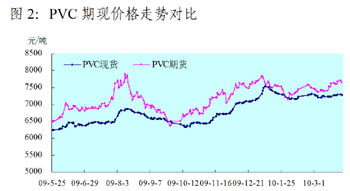 圖二 | 完善石化產(chǎn)業(yè)市場體系建設(shè),轉(zhuǎn)變企業(yè)經(jīng)營理念。PVC期貨上市,進(jìn)一步完善了石化和塑料市場體系,推動了石化產(chǎn)業(yè)市場化進(jìn)程和信息化水平。傳統(tǒng)上,PVC市場價格通常由生產(chǎn)企業(yè)和貿(mào)易商、加工商合同協(xié)商確定,生產(chǎn)廠商定價隨行就市,所形成的價格只是區(qū)域性價格,缺乏代表性和預(yù)測性。PVC期貨上市后,將從根本上改變我國PVC產(chǎn)業(yè)的經(jīng)營模式,通過期貨市場的價格引導(dǎo)和風(fēng)險規(guī)避作用,企業(yè)可以調(diào)整生產(chǎn)經(jīng)營,進(jìn)而引導(dǎo)整個行業(yè)合理進(jìn)行資源配置。 期現(xiàn)價格走勢趨同,相關(guān)性較高。PVC期貨上市以來,期貨價格與現(xiàn)貨價格方向一致,變化幅度大體相當(dāng),體現(xiàn)出良好的趨同性(見圖2)。 據(jù)測算,期現(xiàn)貨價格相關(guān)性高達(dá)0.83,表明PVC期貨市場與現(xiàn)貨市場高度相關(guān),期貨市場能夠有效地反映現(xiàn)貨市場的走勢。同時,期貨價格趨勢超前于現(xiàn)貨價格,為現(xiàn)貨生產(chǎn)和流通提供了價格信號,合理引導(dǎo)生產(chǎn)和消費(fèi),受到現(xiàn)貨貿(mào)易商和下游制品企業(yè)的廣泛關(guān)注。 為相關(guān)企業(yè)提供了規(guī)避風(fēng)險的有效渠道,保障行業(yè)穩(wěn)定發(fā)展。通過PVC期貨,為企業(yè)提供了可預(yù)期的未來價格,同時企業(yè)可以通過買賣與現(xiàn)貨部位相反的期貨合約,將銷售或購買價格事先鎖定在相對合理價位,規(guī)避現(xiàn)貨價格波動風(fēng)險,保證收益。PVC上市以來,已有近600家現(xiàn)貨企業(yè)參與了期貨交易。在參與模式上,這些現(xiàn)貨企業(yè)部分根據(jù)期現(xiàn)價差開展套利交易,部分已開始利用期貨市場進(jìn)行套保交易,獲得較好的避險效果。 為產(chǎn)業(yè)發(fā)展提供強(qiáng)有力的金融支持,節(jié)約交易成本。國內(nèi)PVC行業(yè)已經(jīng)進(jìn)入高成本支撐時代。PVC期貨市場建立后,在嚴(yán)格的信用保證體系下,金融機(jī)構(gòu)可以對企業(yè)提供倉單質(zhì)押等業(yè)務(wù),提高相關(guān)產(chǎn)業(yè)的資金運(yùn)轉(zhuǎn)能力,生產(chǎn)企業(yè)可以利用部分產(chǎn)成品,將其注冊成標(biāo)準(zhǔn)倉單,換回70%—80%的期貨交易保證金;部分企業(yè)還將期貨市場作為現(xiàn)貨交易的第二市場,以付出少量期貨保證金的代價,銷售或購買產(chǎn)品,提高了資金利用率。 實(shí)行推薦品牌交割制度,助推行業(yè)建立品牌價值。PVC期貨采用的是推薦品牌交割制度,如果投資者可以提供生產(chǎn)廠家出具的質(zhì)檢證書及質(zhì)量承諾書,則推薦廠家生產(chǎn)的推薦品牌產(chǎn)品可實(shí)現(xiàn)免檢注冊倉單,從而簡化交割程序,降低交割成本。根據(jù)市場認(rèn)可度、生產(chǎn)規(guī)模和質(zhì)量控制水平等,PVC目前推薦廠家品牌有9個,在交割品牌制度的影響下,這些品牌產(chǎn)品成為市場上的搶手貨。 有助于形成國際PVC市場的中國價格。爭取國際PVC定價權(quán)具有重大的現(xiàn)實(shí)意義,有助于提升我國企業(yè)在國際競爭中的地位。我國是世界上最大的合成樹脂進(jìn)口國,消費(fèi)量全球第二,其中PVC消費(fèi)量居全球首位,是國際樹脂消費(fèi)年均增長速度最快的國家。此外,我國樹脂生產(chǎn)廠家適度集中,下游塑料制品生產(chǎn)廠家眾多,且存在大量的各級經(jīng)銷商,現(xiàn)貨貿(mào)易活躍,具有發(fā)展期貨市場,形成PVC中國價格的現(xiàn)貨基礎(chǔ)。近兩年,得益于國內(nèi)巨大的市場需求,大商所已成為全球最大的塑料期貨市場,期貨價格開始為國際市場所關(guān)注。隨市場規(guī)模的進(jìn)一步擴(kuò)大,將發(fā)展成為影響世界塑料產(chǎn)品標(biāo)準(zhǔn)與價格的定價中心和交易中心。 |