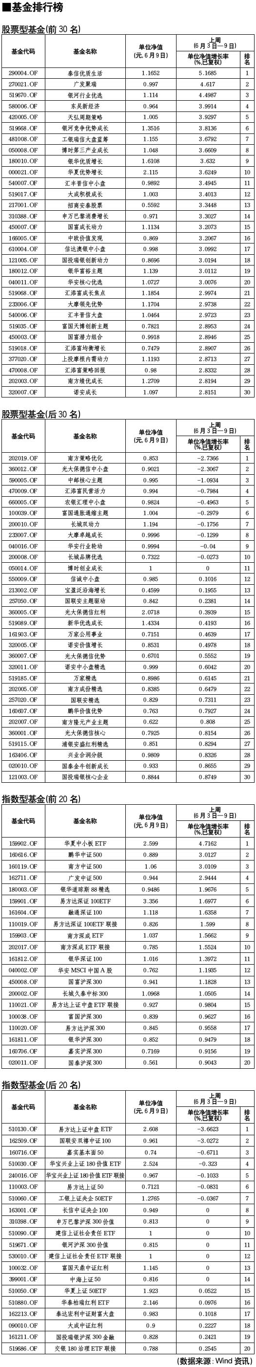 股票型基金排行榜[2010-06-11]