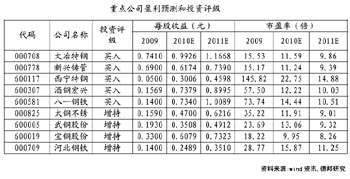 鋼鐵業(yè)還有其他兩類題材也可以關注,就是特鋼公司和受益區(qū)域經(jīng)濟發(fā)展的公司。 愛建證券發(fā)布的報告表示,下半年具體投資策略可遵循以下思路:一類是特鋼行業(yè),如大冶特鋼、中原特鋼等,另一類是受益于區(qū)域經(jīng)濟大發(fā)展的公司如八一鋼鐵。 報告稱,特鋼行業(yè)盈利較普鋼行業(yè)更穩(wěn)定。由于特鋼行業(yè)從生產(chǎn)工藝到產(chǎn)品用途與普通碳鋼都有著很大差別,因此普通碳鋼所面臨的諸如產(chǎn)能過剩、原材料價格上漲對特鋼而言,都不會構成太大的問題。而且特鋼產(chǎn)品具有良好市場前景,從過去幾年的情況看,特鋼產(chǎn)品即便有成本上漲壓力也能夠通過向下游提價轉(zhuǎn)移釋放,使毛利率繼續(xù)保持穩(wěn)定。因此可以看到,在最近一年的走勢中,特鋼股票明顯要強于普鋼股票。下半年仍可關注特鋼類上市公司,如大冶特鋼、中原特鋼等。 區(qū)域經(jīng)濟發(fā)展也將帶來一定機會。該券商報告表示,中期來看,到2015年新疆人均地區(qū)生產(chǎn)總值達到全國平均水平,城鄉(xiāng)居民收入和人均基本公共服務能力達到西部地區(qū)平均水平,基礎設施條件明顯改善,“十二五”期間新疆全社會固定資產(chǎn)投資規(guī)模將比“十一五”期間翻一番多;長期來看,到2020年,確保實現(xiàn)全面建設小康社會的奮斗目標,基本消除絕對貧困現(xiàn)象。預計中央會繼續(xù)加大對新疆地區(qū)的基礎設施投入,包括電網(wǎng)、鐵路、公路的建設和部分地區(qū)的住房改造。因此,未來幾年新疆地區(qū)的鋼材需求增速將大大高于國內(nèi)平均水平,這將讓疆內(nèi)唯一的鋼鐵公司——八一鋼鐵受益不少。 東方證券也表示,從結構看,具備產(chǎn)品優(yōu)勢和區(qū)域優(yōu)勢的鋼鐵公司,目前調(diào)整后的股價已經(jīng)具有吸引力。重點推薦:大冶特鋼、八一鋼鐵、寶鋼股份。 |