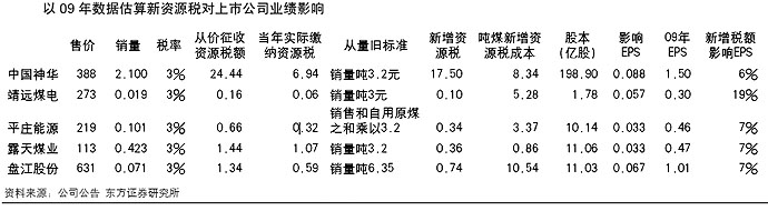在7月5日至6日舉行的西部大開(kāi)發(fā)工作會(huì)議上,國(guó)務(wù)院總理溫家寶在講話中指出,今后10年我國(guó)將深入實(shí)施西部大開(kāi)發(fā)戰(zhàn)略,并對(duì)西部地區(qū)煤炭、原油、天然氣等資源稅由“從量征收”改為“從價(jià)征收”。隨后在8日舉行的西部大開(kāi)發(fā)10周年新聞發(fā)布會(huì)上,國(guó)家發(fā)改委副主任杜鷹表示,資源稅改革率先在新疆試點(diǎn),試點(diǎn)稅率為5%,今后將逐步向全國(guó)推開(kāi),不同產(chǎn)品稅率可能不同。 上述表態(tài)一是明確了資源稅改革的范圍從原油、天然氣擴(kuò)大到煤炭,二是讓市場(chǎng)普遍預(yù)期,剛剛實(shí)施的針對(duì)新疆地區(qū)的資源稅改革政策將在不久后推廣到西部12個(gè)省份。 券商普遍認(rèn)為:資源稅改革將對(duì)煤炭行業(yè)上市公司的業(yè)績(jī)產(chǎn)生實(shí)質(zhì)影響;但是對(duì)石油石化行業(yè)影響不大,而且有可能在未來(lái)帶來(lái)利好。