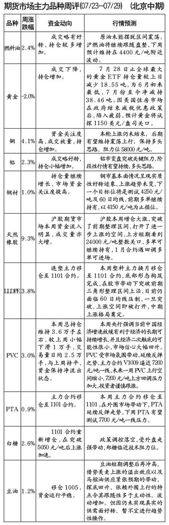 期貨市場(chǎng)主力品種周評(píng)[07.23-07.30]
