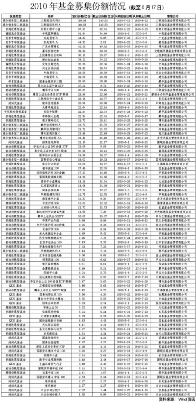 在統(tǒng)計(jì)今年以來(lái)新發(fā)基金產(chǎn)品募集份額的過(guò)程中,份額募集不足似乎成為了一種常態(tài)。相當(dāng)一部分基金在認(rèn)購(gòu)截止日都不能實(shí)現(xiàn)最初的目標(biāo)。據(jù)統(tǒng)計(jì),截至8月17日,約有46只基金首募份額因不滿10億份而被戲稱為“迷你”新基金?偟膩(lái)看,目前發(fā)行規(guī)模最大的是工銀瑞信雙利債基,發(fā)行規(guī)模140.53億份;發(fā)行規(guī)模最小的為興業(yè)合潤(rùn)分級(jí)A,募集規(guī)模僅0.96億份;倒數(shù)第二是募集1.07億份的寶盈中證100;倒數(shù)第三的是募集1.44億份的興業(yè)合潤(rùn)分級(jí)B。 從具體的分類品種看,在新發(fā)的10只封閉式基金中,興業(yè)合潤(rùn)分級(jí)A及分級(jí)B分列倒數(shù)第一和第二位,而國(guó)聯(lián)安雙禧A中證100則以2.24億份占據(jù)倒數(shù)第三的位置,其雙禧B中證100也沒(méi)實(shí)現(xiàn)擬發(fā)行目標(biāo)。 股票型基金方面,金元比聯(lián)核心動(dòng)力僅募集3.75億份;金鷹穩(wěn)健成長(zhǎng)也沒(méi)能實(shí)現(xiàn)6.49億份的發(fā)行份額,僅募集到5.21億份;截止日募集份額與發(fā)行份額差距最大的是偏股混合基金中銀藍(lán)籌精選,最初的發(fā)行額為64.84億份,而到截止日只募集到54.46億份,差額超過(guò)了7億份。 新發(fā)的指數(shù)基金日子也不如意。倒數(shù)第一位的寶盈中證100,到截止日僅募集到1.07億份,未達(dá)到其2.81億發(fā)行份額的一半;另外,易方達(dá)上證中盤ETF募集份額也是少得可憐,9.72億份的首募規(guī)模與其發(fā)行份額竟相差17.8億份。 今年4月份以來(lái),中海基金和東吳基金兩家共發(fā)行了4只貨幣市場(chǎng)基金。不過(guò),與中;饍芍Мa(chǎn)品完成募集規(guī)模相比,東吳基金旗下的東吳貨幣A和東吳貨幣B的表現(xiàn)就不那么令人滿意了。據(jù)wind統(tǒng)計(jì)顯示,東吳貨幣A發(fā)行份額44.33億份,實(shí)際只募集到2.01億份;其東吳貨幣B也僅募集到6.88億份。一位業(yè)內(nèi)人士表示:“現(xiàn)在利息低,貨幣基金也沒(méi)什么賺頭了,東吳發(fā)行目標(biāo)定的確不太可行! 好買基金研究中心研究員劉朝陽(yáng)表示,上半年市場(chǎng)環(huán)境不好造成了對(duì)新基金申購(gòu)、規(guī)模的影響,目前,基民可能更多的是寧愿購(gòu)買老基金,而不買不熟悉的新基金。這主要是因?yàn)樵谡w資本市場(chǎng)環(huán)境不佳的情況下,老基金的操作比較成熟,對(duì)倉(cāng)位有一定的控制,不會(huì)急于去買進(jìn)一些股票,業(yè)績(jī)也相對(duì)穩(wěn)定。畢竟新基金是一張白紙,沒(méi)有歷史可尋,而老基金畢竟有基金管理公司、基金經(jīng)理、基金運(yùn)作特征等可以參考。 中國(guó)證監(jiān)會(huì)日前公布了基金募集申請(qǐng)核準(zhǔn)最新進(jìn)度情況。根據(jù)基金募集申請(qǐng)核準(zhǔn)進(jìn)度公示表,8月9日-13日,證監(jiān)會(huì)又接收了信誠(chéng)中證500指數(shù)分級(jí)基金、銀河創(chuàng)新成長(zhǎng)股票型基金和泰達(dá)宏利領(lǐng)先中小盤股票型基金的募集申請(qǐng)材料。新基金的發(fā)行仍在繼續(xù)……