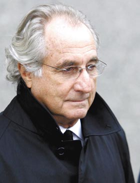 過(guò)去20年間,前納斯達(dá)克股票市場(chǎng)公司董事會(huì)主席麥道夫制造了美國(guó)史上最大一樁“龐氏騙局”,吸納客戶(hù)資金超過(guò)500億美元,數(shù)以千計(jì)的機(jī)構(gòu)和個(gè)人投資者損失慘重。今年6月,麥道夫因證券欺詐、洗錢(qián)、偽證等多項(xiàng)罪名被判150年監(jiān)禁。目前,71歲的他正在美國(guó)北卡羅萊納州巴特納聯(lián)邦懲治中心服刑。