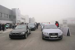柴油驅(qū)動的寶馬、奧迪、奔馳急待出發(fā)。本報記者 史天舒 攝