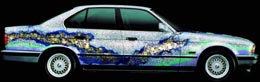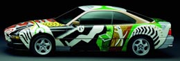 1995年由英國藝術(shù)家大衛(wèi)·霍尼克創(chuàng)作的BMW850Csi藝術(shù)車。 從汽車的外部可以看見內(nèi)部的創(chuàng)意想法,使霍尼克花了好幾個月 才完成最后的作品。這個藝術(shù)構(gòu)想讓作品創(chuàng)造出令人嘖嘖稱奇的透明感。 時髦的設(shè)計讓引擎的進(jìn)氣歧管在引擎蓋下一目了然,從車門外可以 一窺駕駛者的廬山真面目——當(dāng)然,還有他的臘腸狗。