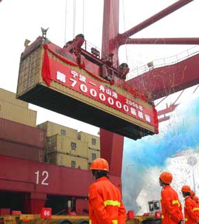 寧波交通運(yùn)輸協(xié)會(huì)堆場(chǎng)委員會(huì)秘書長(zhǎng)高林說,由于成本的猛漲,近兩年來,連一直實(shí)行國(guó)家指導(dǎo)價(jià)的港區(qū)內(nèi)企業(yè)的作業(yè)收費(fèi)也開始增加,其中集裝箱的倉(cāng)儲(chǔ)費(fèi)提高了整整一倍,于是,我們也商議增收附加費(fèi)方案,先是小箱30元、大箱60元,經(jīng)征求用戶意見,說有些偏高,最后定下來是小箱20元、大箱40元。我們認(rèn)為,這個(gè)費(fèi)用并不高,貨主和有關(guān)企業(yè)是可以承受消化的。