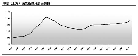 2007年5,月中原(上海)領先指數(shù)為127點,樣本成交均價14301元/平方米,環(huán)比上漲1.96%;本月指數(shù)回升到近一年以來的最高點,而成交量也出現(xiàn)了大幅增加,同上月相比增加了近30%。