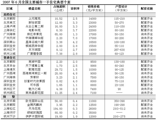 2007年6月全國(guó)主要城市一手住宅典型個(gè)案
