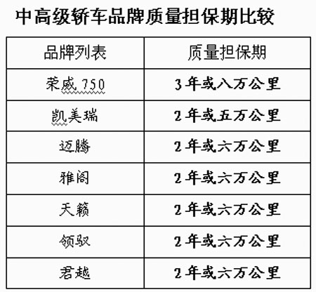 [圖片新聞]中高級(jí)轎車品牌質(zhì)量擔(dān)保期比較