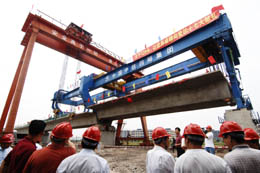 最大客運專線鐵路箱梁在武廣高速鐵路架設