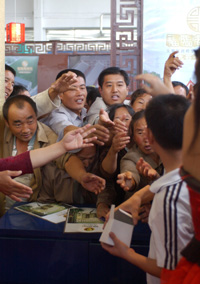 9月6日,呼和浩特市2007年秋季房地產(chǎn)展銷會在內(nèi)蒙古國際會展中心舉行,展出43家開發(fā)企業(yè)的50多個在建和已建成的中高低檔商品房、經(jīng)濟(jì)適用房項目以及一批二手房。據(jù)介紹,此次參展的項目價格大部分較春季有所上漲,但漲幅不大,基本保持在5%左右。圖為市民在呼和浩特秋季房地產(chǎn)展示會上爭搶一樓盤展位發(fā)放的貴賓卡。