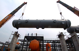 中國石化天津100萬噸/年乙烯及配套項目中的6萬噸/年回收裝置重75噸、長22.4米的反應(yīng)器日前順利吊裝就位。據(jù)介紹,總投資270億元的中國石化天津100萬噸/年乙烯及配套項目計劃在2009年9月投產(chǎn)運(yùn)行。
