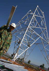 我國將于2008年建成西北750千伏骨干網(wǎng)架。2010年,西北750千伏電網(wǎng)與國家電網(wǎng)1000千伏特高壓電網(wǎng)異步聯(lián)網(wǎng)。屆時,西北五省(區(qū))豐富的水火電將實現(xiàn)集中外送,促進(jìn)資源優(yōu)勢向經(jīng)濟(jì)優(yōu)勢轉(zhuǎn)化。