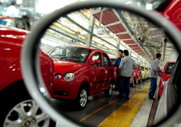 奇瑞QQ成為近些年來中國市場最為暢銷的小型車。圖為技術(shù)人員正在檢測剛下線的汽車。新華社記者:陶明