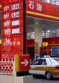 從11月1日0時開始,中國的油價再次上調(diào),北京地區(qū)的93號汽油每升從原來的4.90元提高到5.34元,97號汽油從5.22元提高到5.68元。當天,北京宣武區(qū)一加油站的油價顯示牌上顯示上調(diào)后的油價。新華社記者:羅曉光 攝