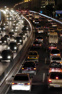 2007年北京市機(jī)動(dòng)車保有量突破300萬輛。圖為北京二環(huán)路上浩浩蕩蕩的車流。新華社發(fā) | 本報(bào)訊